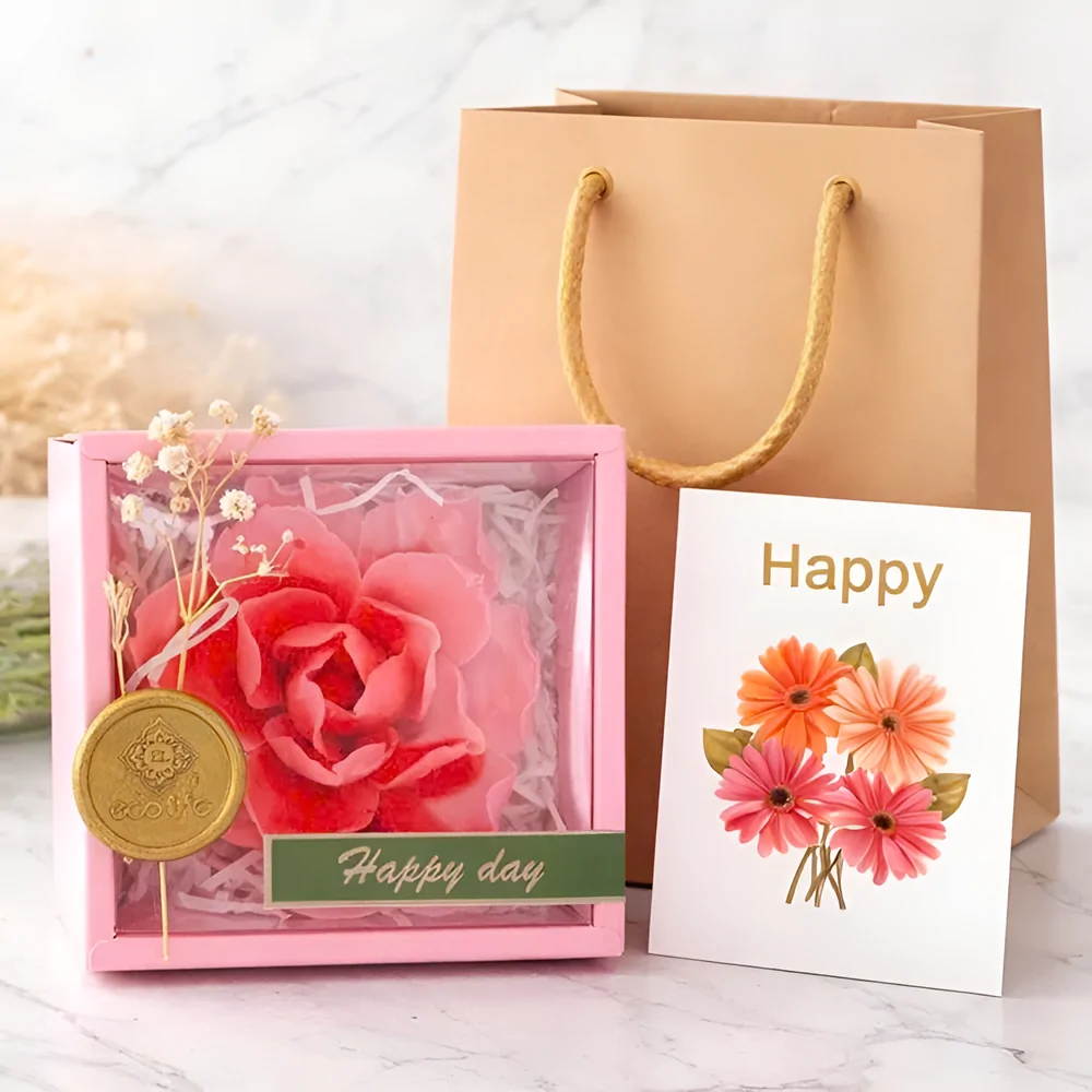 *Bộ sản phẩm gồm : Hộp hoa xà phòng + túi đựng + thiệp