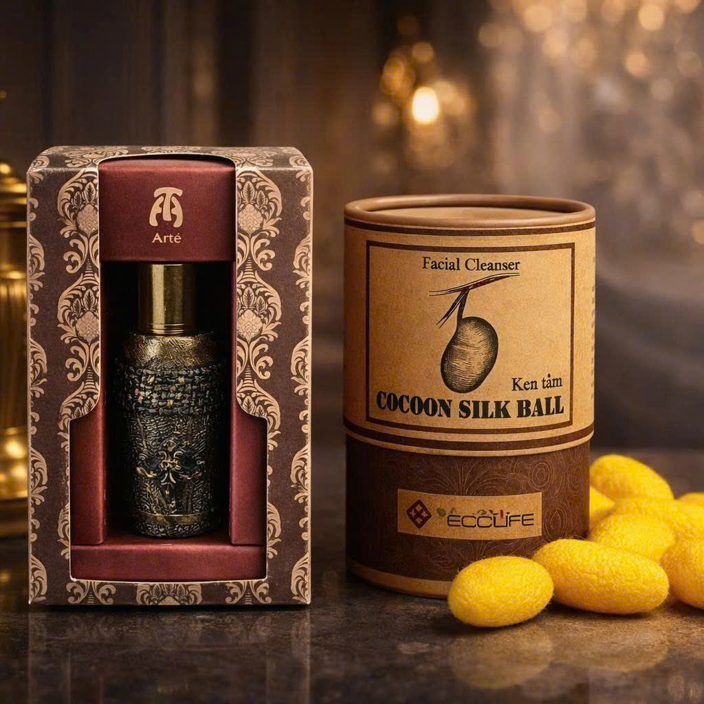 *Hộp kén tằm : Làm sạch, tẩy trang, dưỡng da. Ngâm nở kén tằm trong nước ấm nhẹ 5-10 phút, xoa nhẹ lên da theo vòng tròn, massage và cảm nhận sự khác biệt